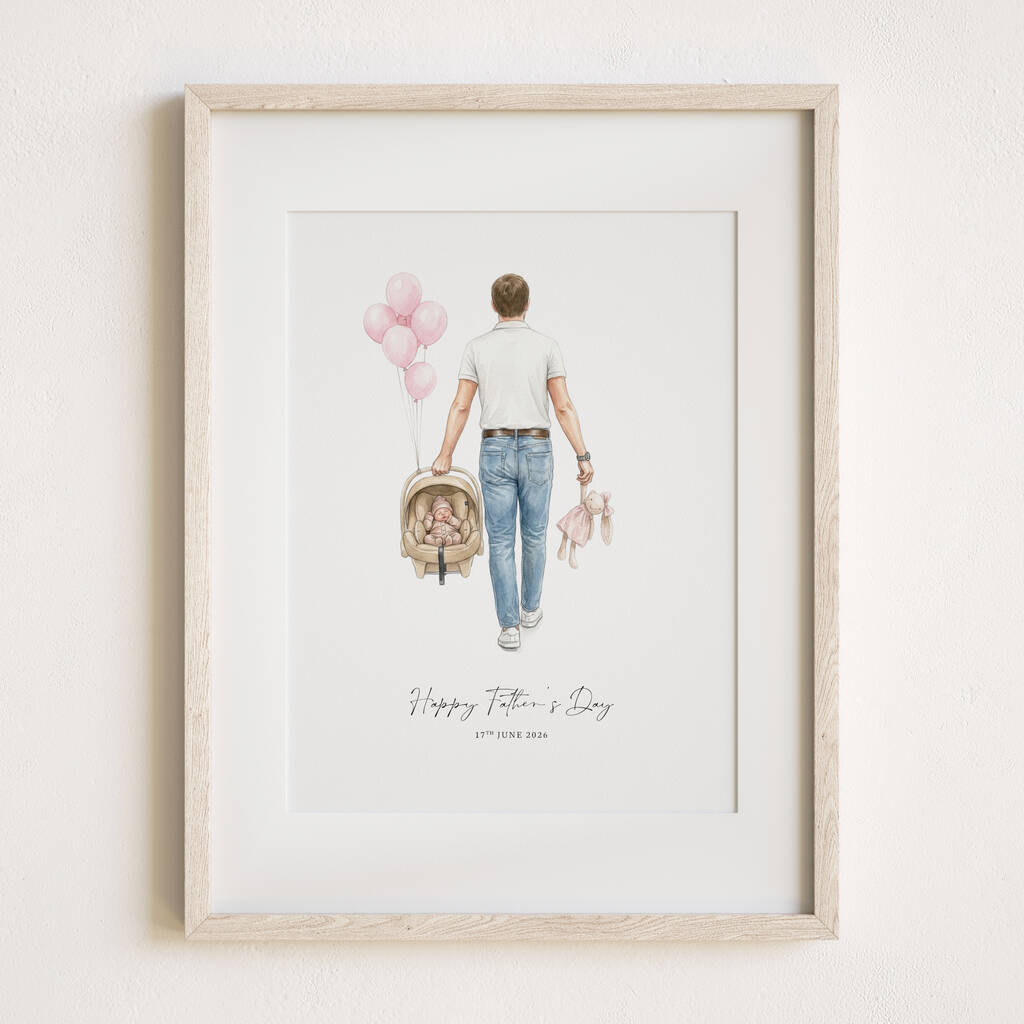 Personalised First Father's Day Print, New Dad Watercolour Portrait Gift