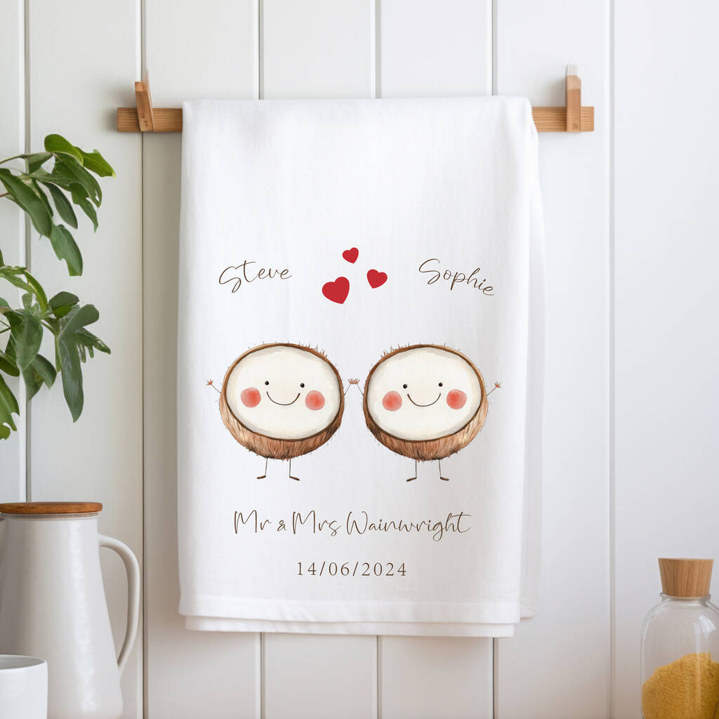 Personalised Coconuts Wedding Anniversary Tea Towel Gift