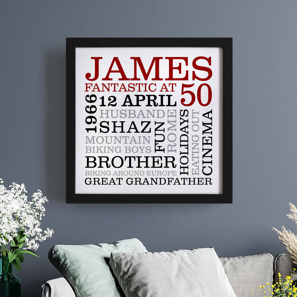 Personalised 50th Birthday Typographic Art
