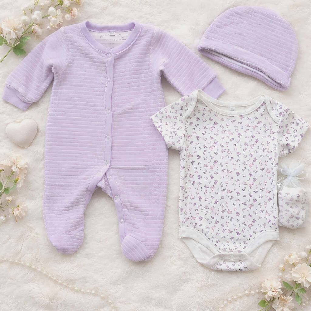 New Baby Girl Floral Lilac Outfit Gift Set