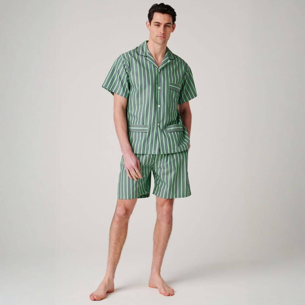 Men's 'Green Flash' Stripe Crisp Cotton Short Pyjama Set