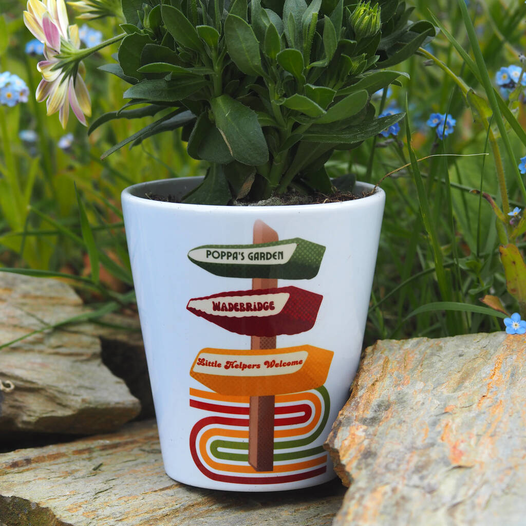 Retro Sixties Signpost Personalised Plant Pot For Dad