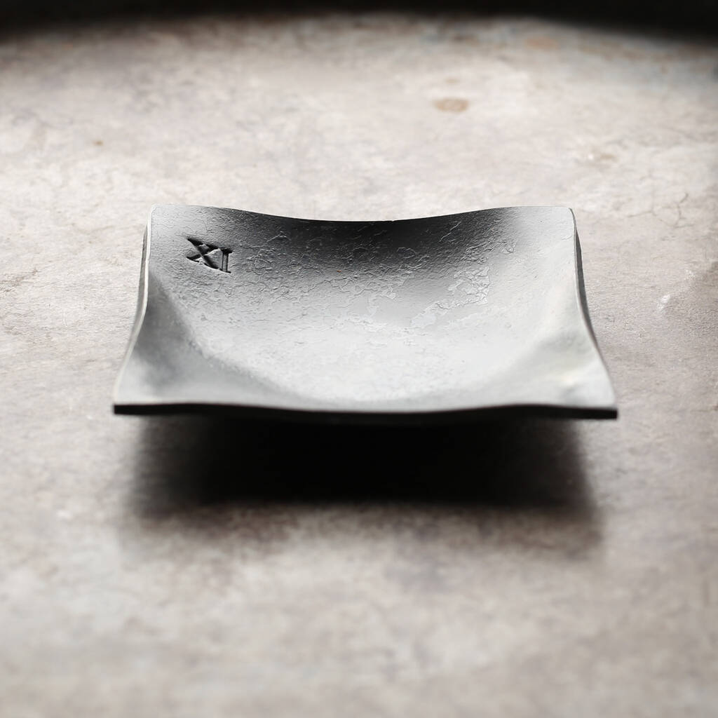11th Anniversary Curved Square Steel Dish . Smooth Finish