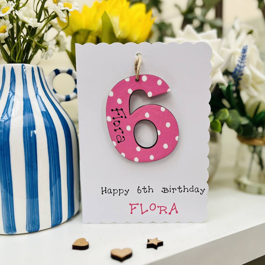 Personalised 6th Birthday Card Wooden Number Gift