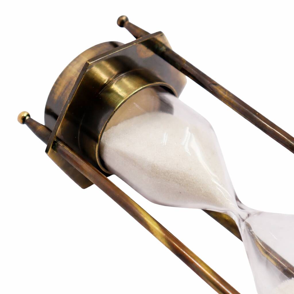Bronze Hourglass With White Sand And Compass