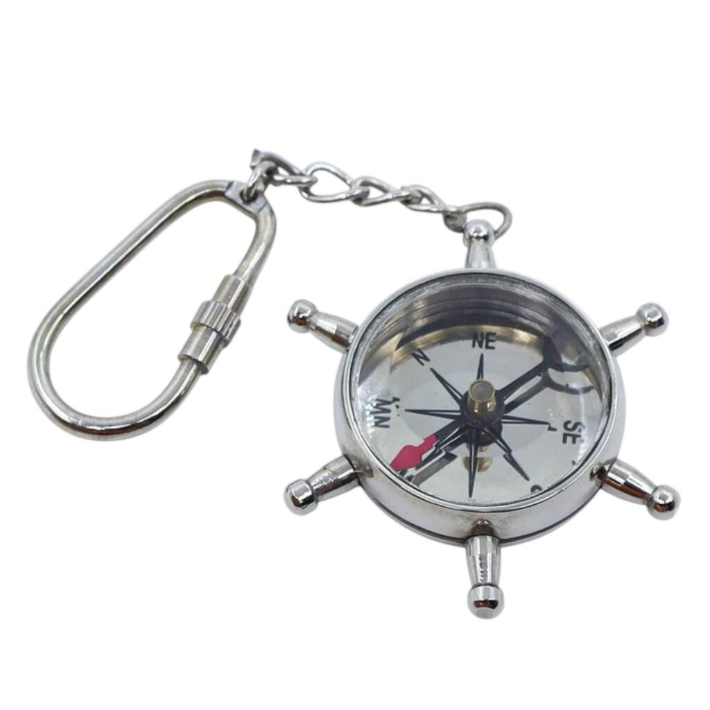Chrome Ship Wheel Compass Keyring