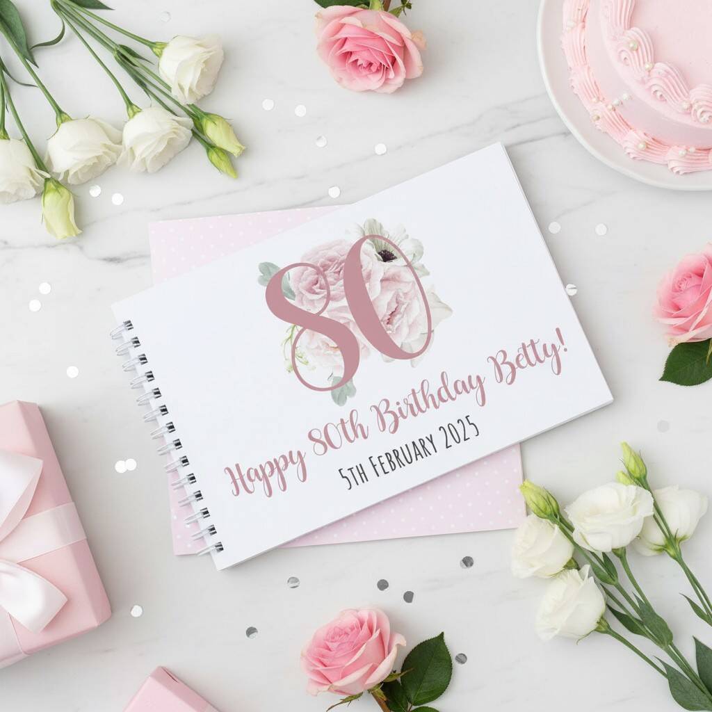 Personalised Watercolour Flower Birthday Guest Book