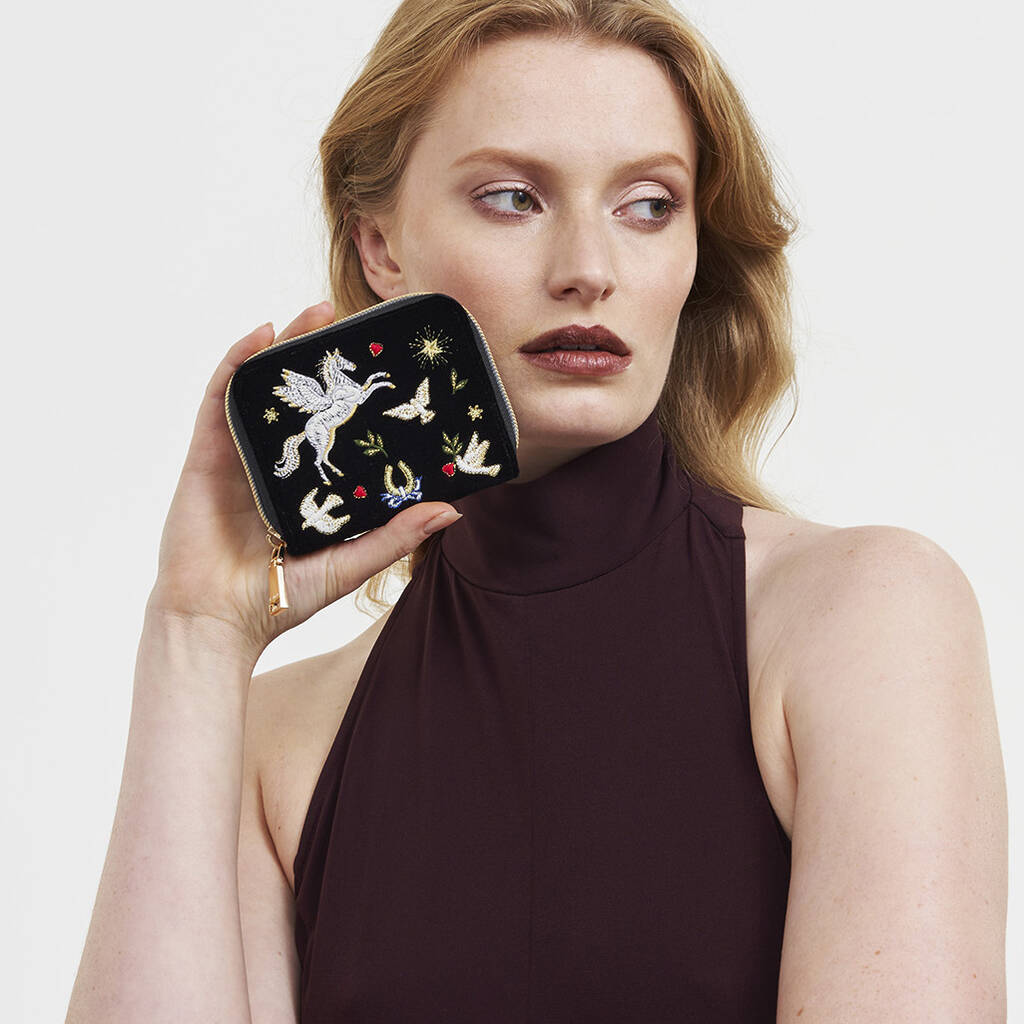 Black Celestial Velvet Embroidered Purse Small