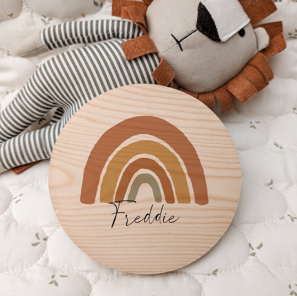 Personalised Earthy Rainbow Name Plaque | Wooden Nursery Name Sign