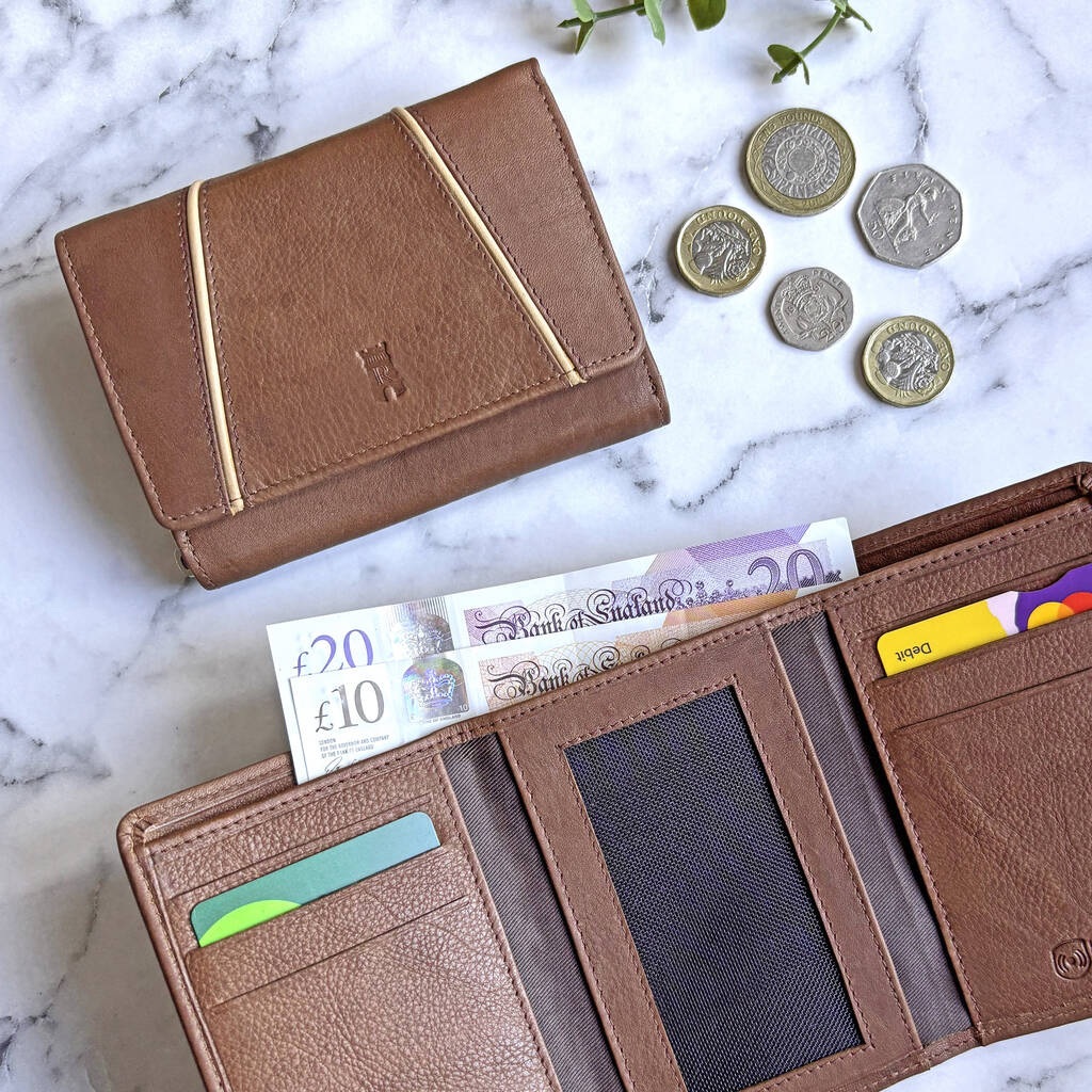 Women's Brown And Tan Genuine Leather Purse Rfid Secure