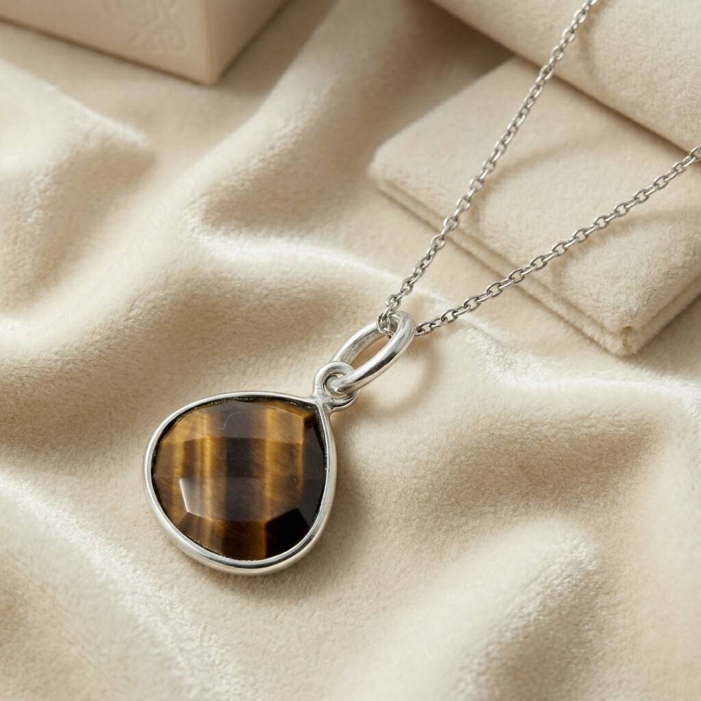 Sterling Silver Tiger's Eye Protection Crystal Necklace