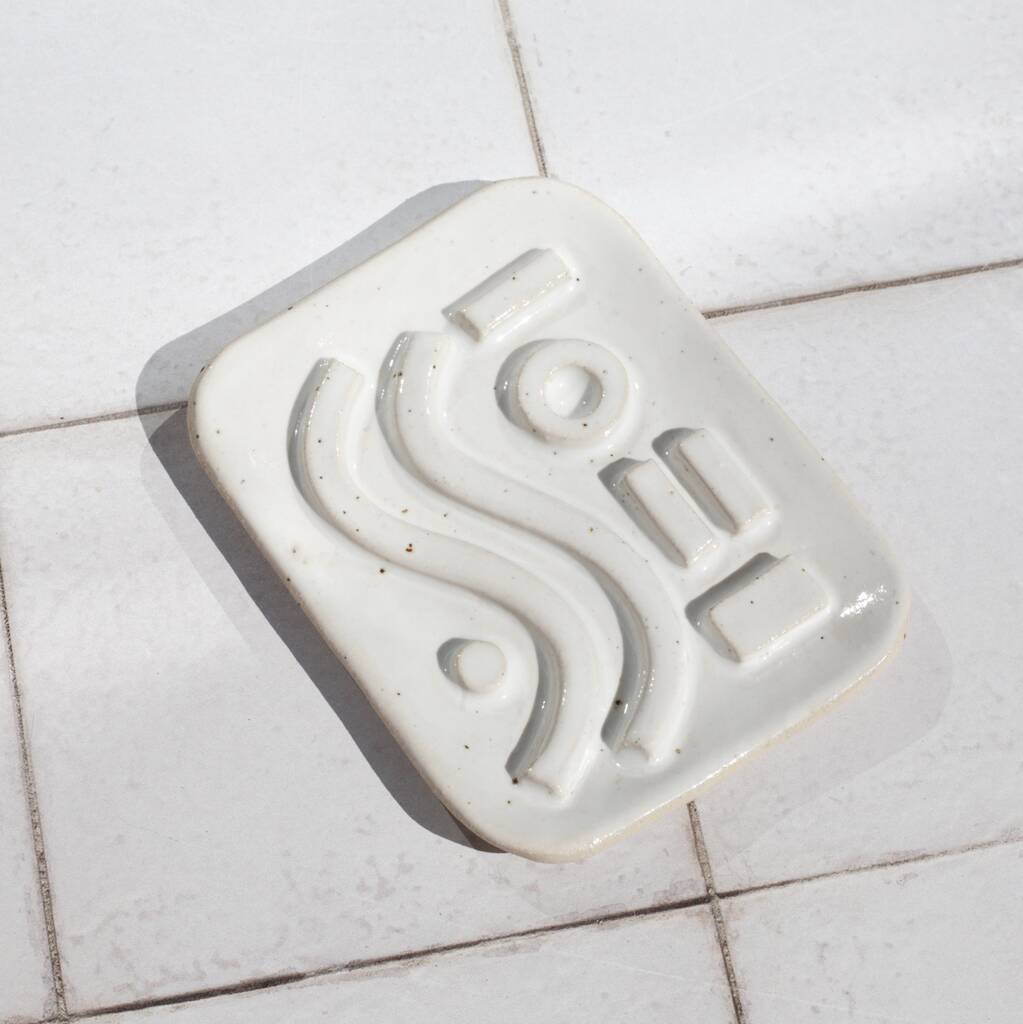 Geometric Speckled White Ceramic Soap Dish