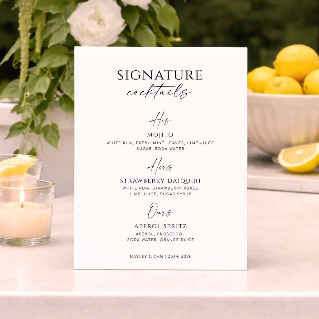 Wedding Signature Cocktail Bar Menu Sign