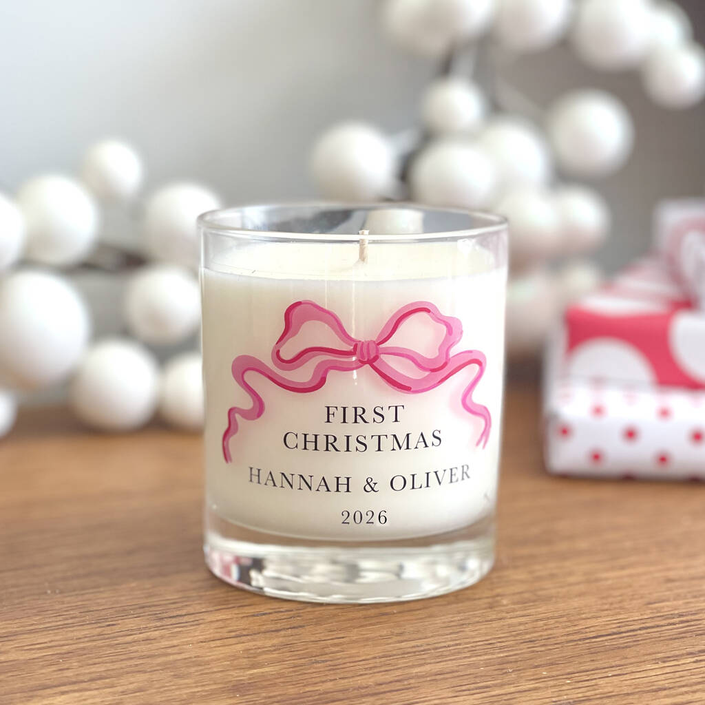 First Christmas Personalised Candle With Ribbon Design