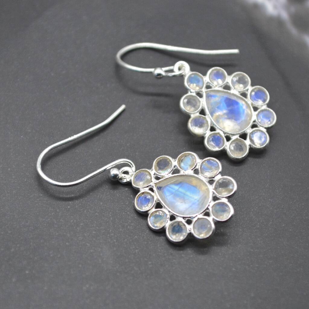 Floral Rainbow Moonstone Earrings: Silver Or Gold