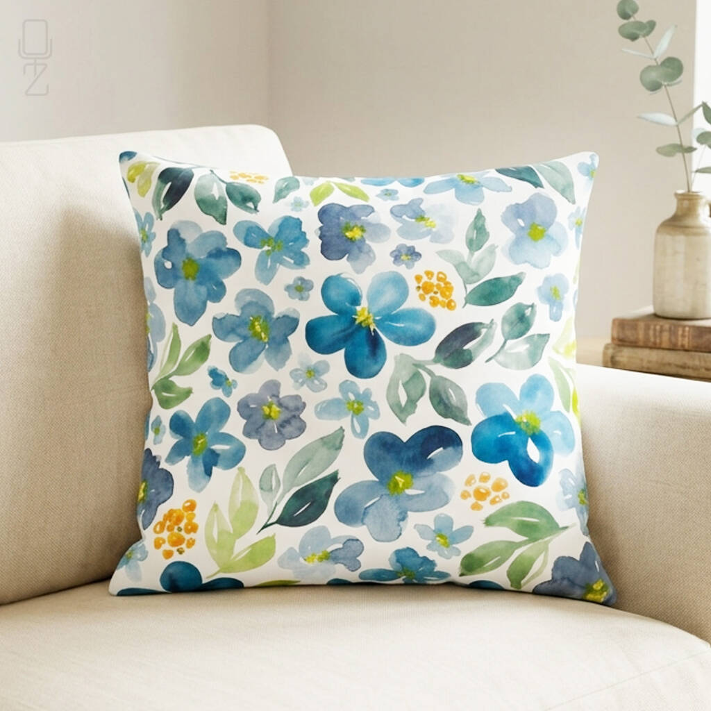 Blue Watercolor Botanical Wildflower Cushion Cover
