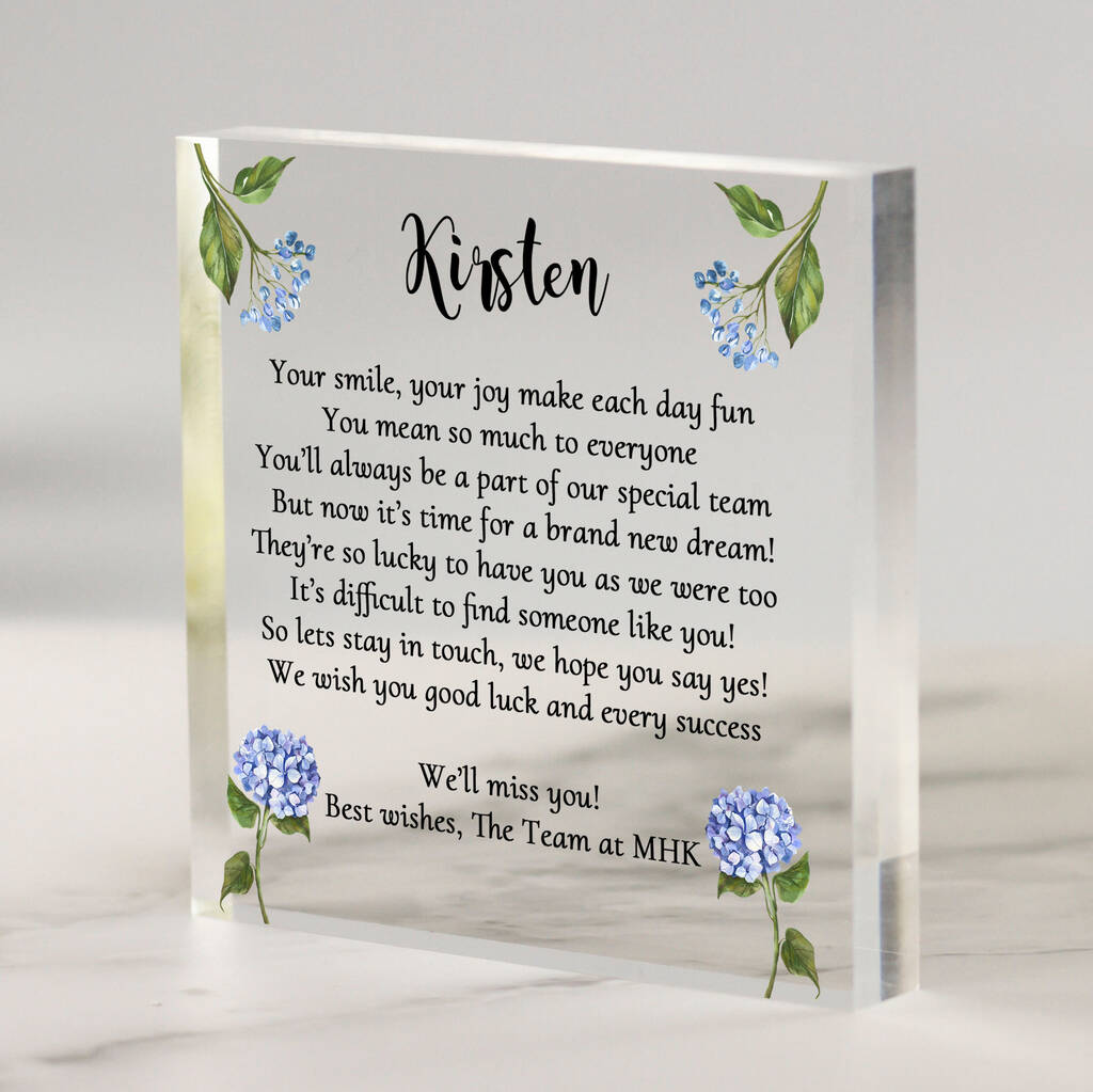 Personalised Leaving Gift Acrylic Block Keepsake