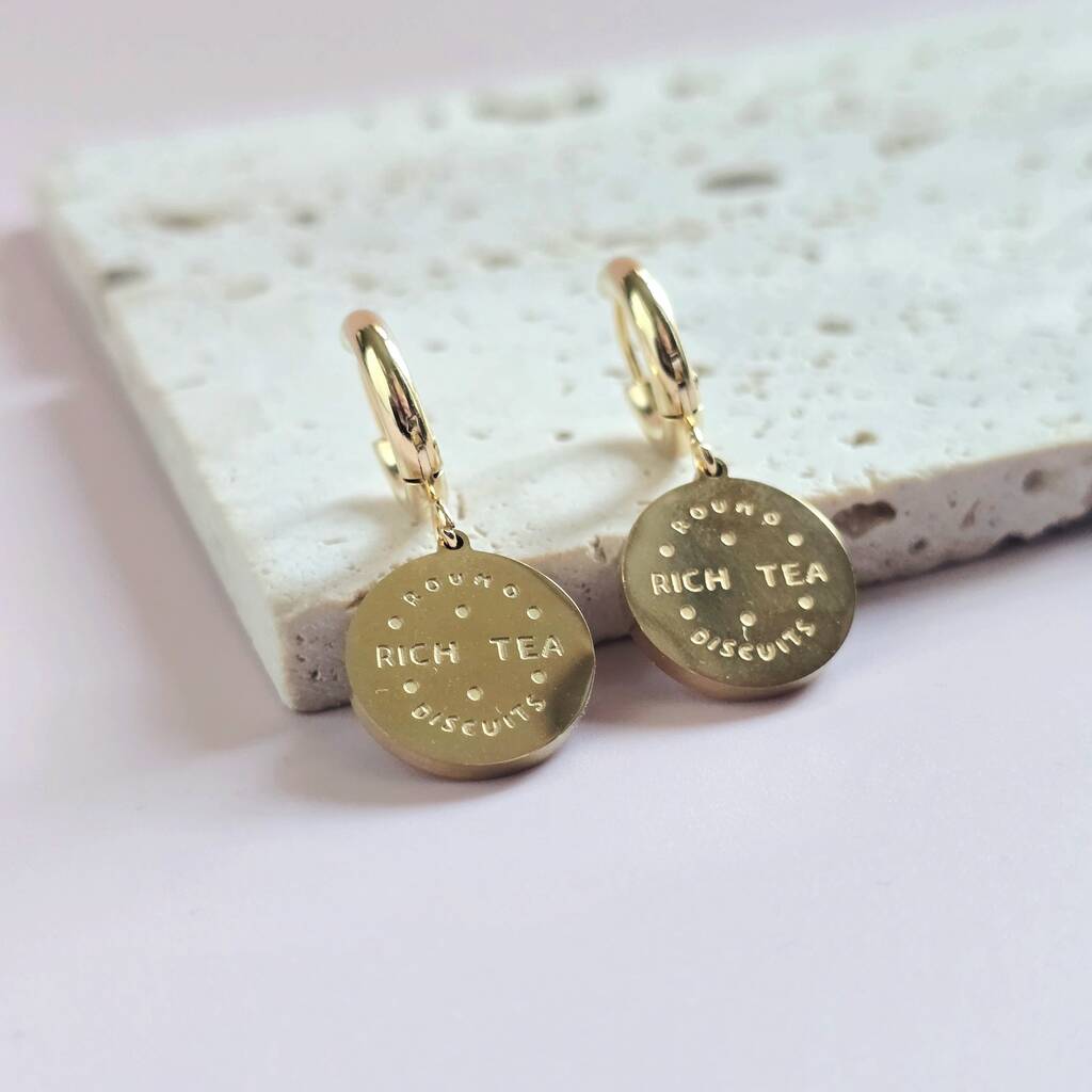 Rich Tea Biscuit Gold Plated Huggie Hoop Earrings