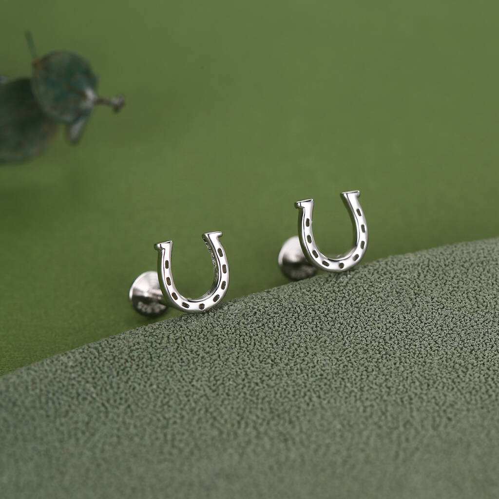 Sterling Silver Horseshoe 16 G Flat Back Labret Earrings