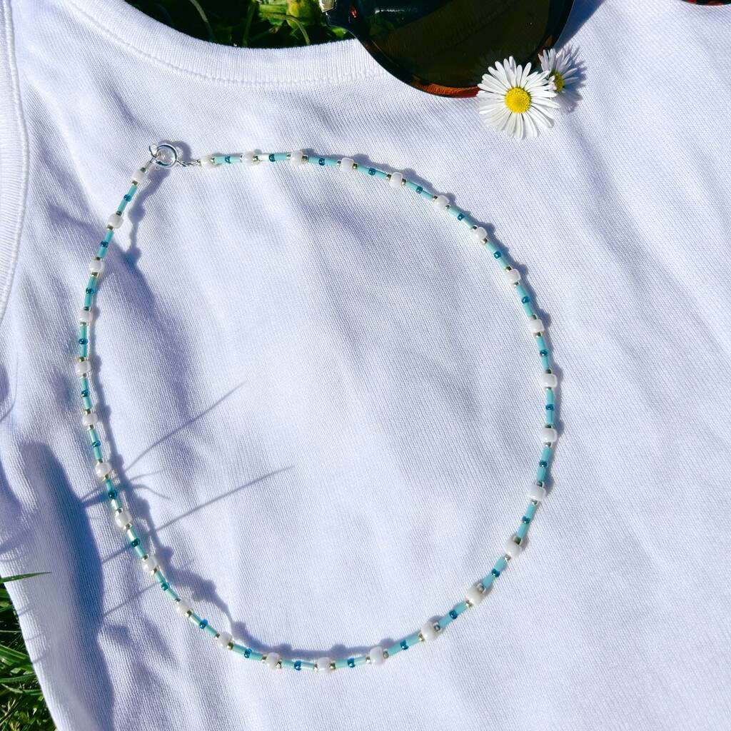 Minimal Turquoise And White Beaded Necklace