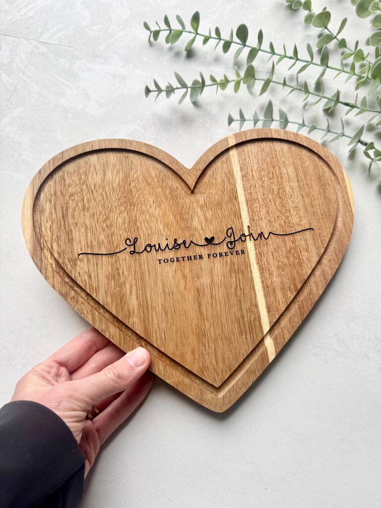 Heart Shaped Acacia Engraved Board Wedding Gift