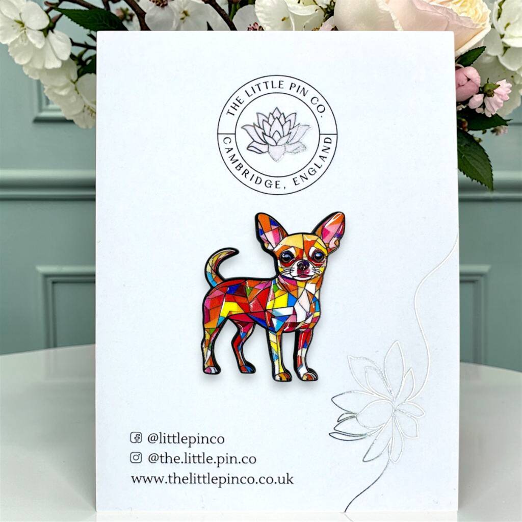 Geometric Rainbow Chihuahua Dog Enamel Pin