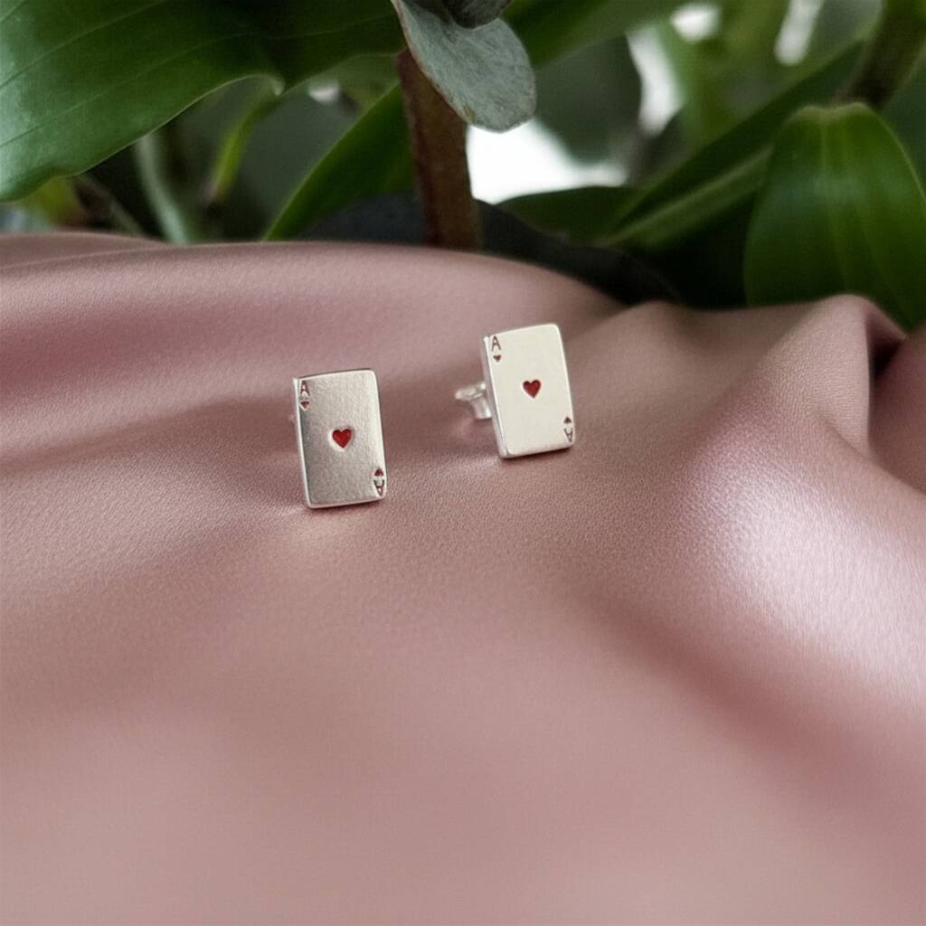 Ace Of Hearts Sterling Silver Stud Earrings
