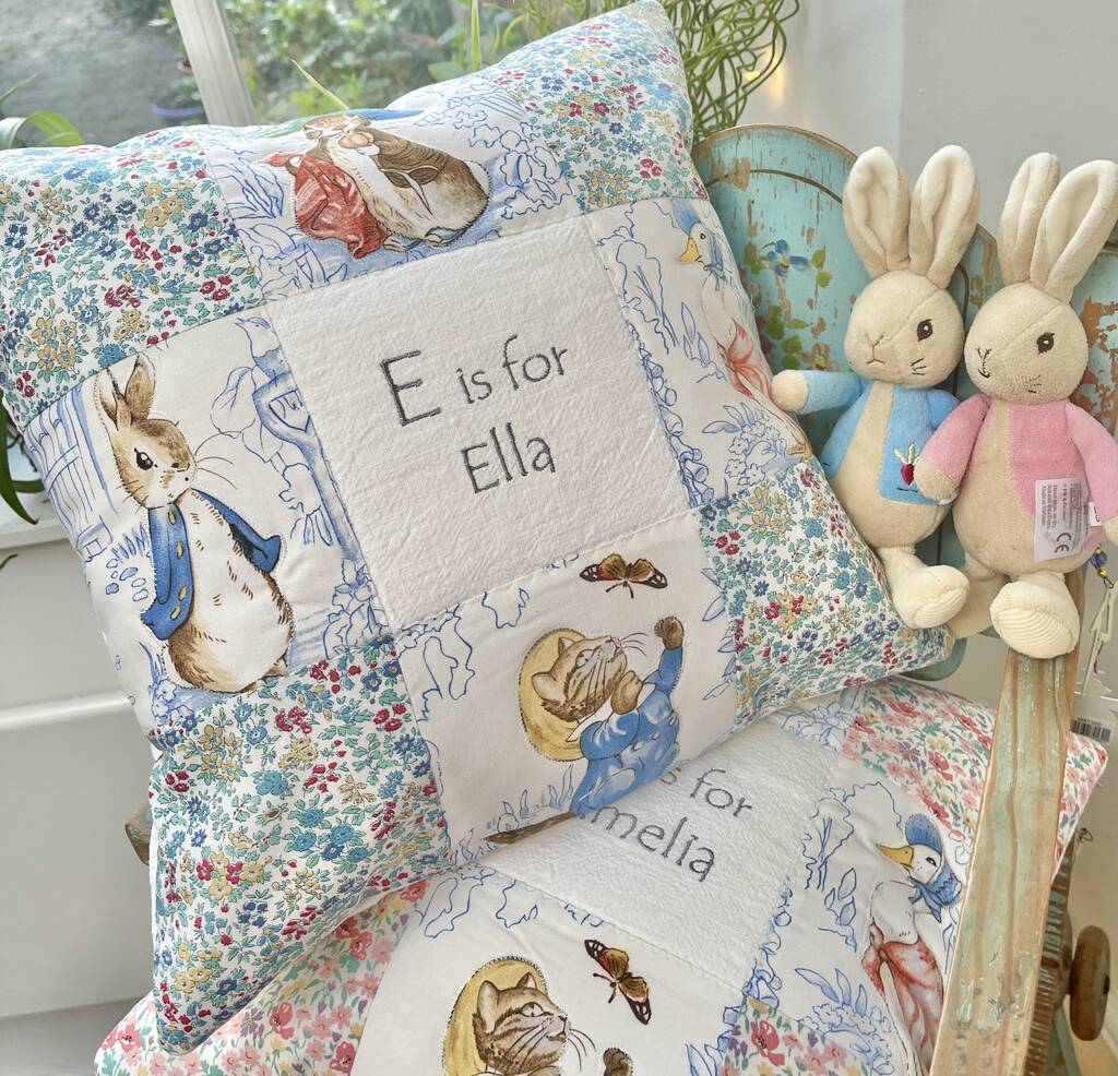 Beatrix Potter Patchwork Floral Name Cushion