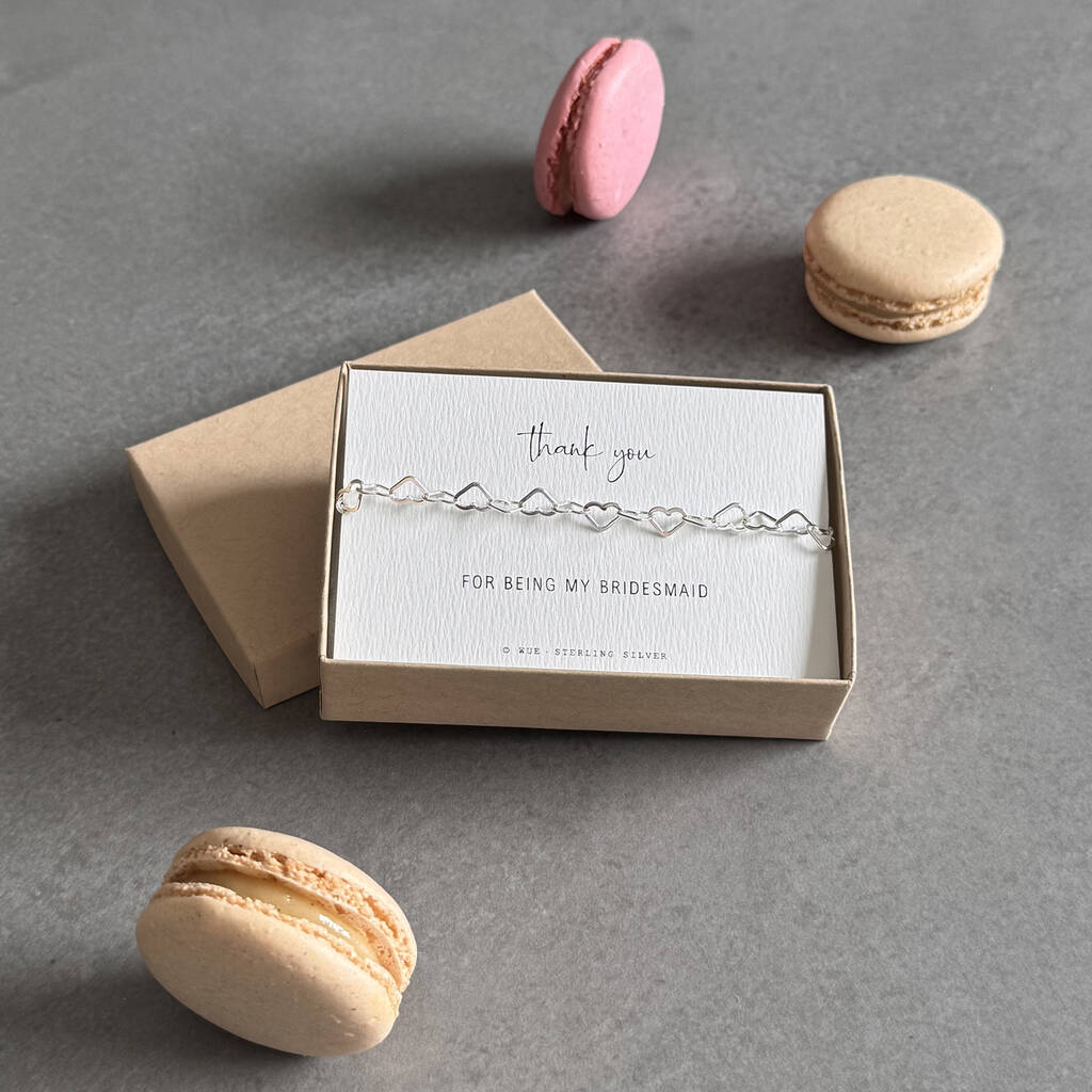 Thank You Bridesmaid Sterling Silver Heart Links Bracelet